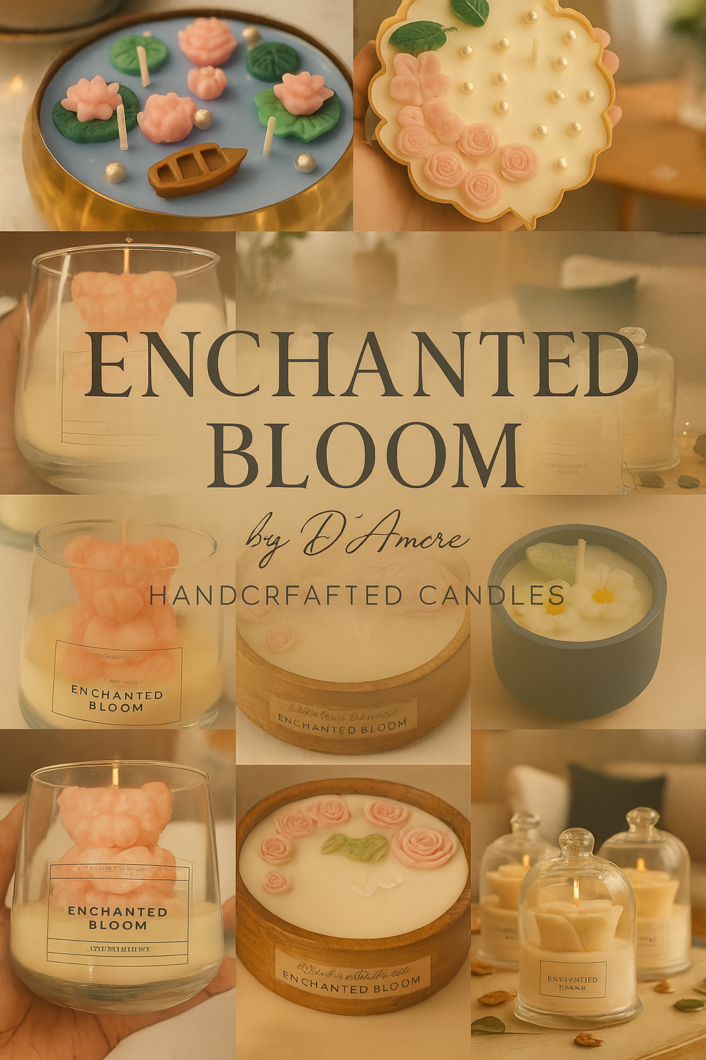 At Enchanted Bloom by D'Amore, we craft artisanal candles designed to captivate the senses and transform any space. Founded by Druna Paul, our brand blends unique fragrances into one-of-a-kind masterpieces. We are committed to quality, using premium natural soy wax and pure essential oils for a clean, long-lasting burn. Each candle is meticulously handcrafted, reflecting the dedication and artistry. We infuse love, intention, and a touch of magic into each candle, sculpting artisanal experiences that kindle the soul.